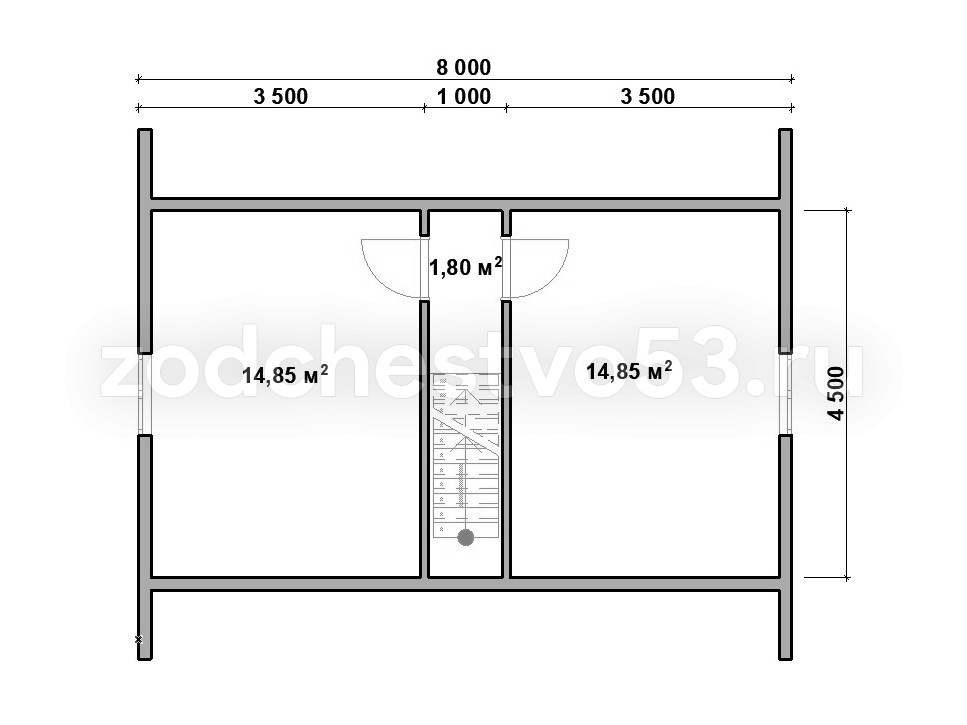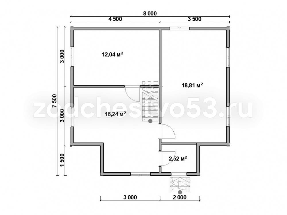Проект Д-46. Дом из сухого бруса 7,5х8 м.