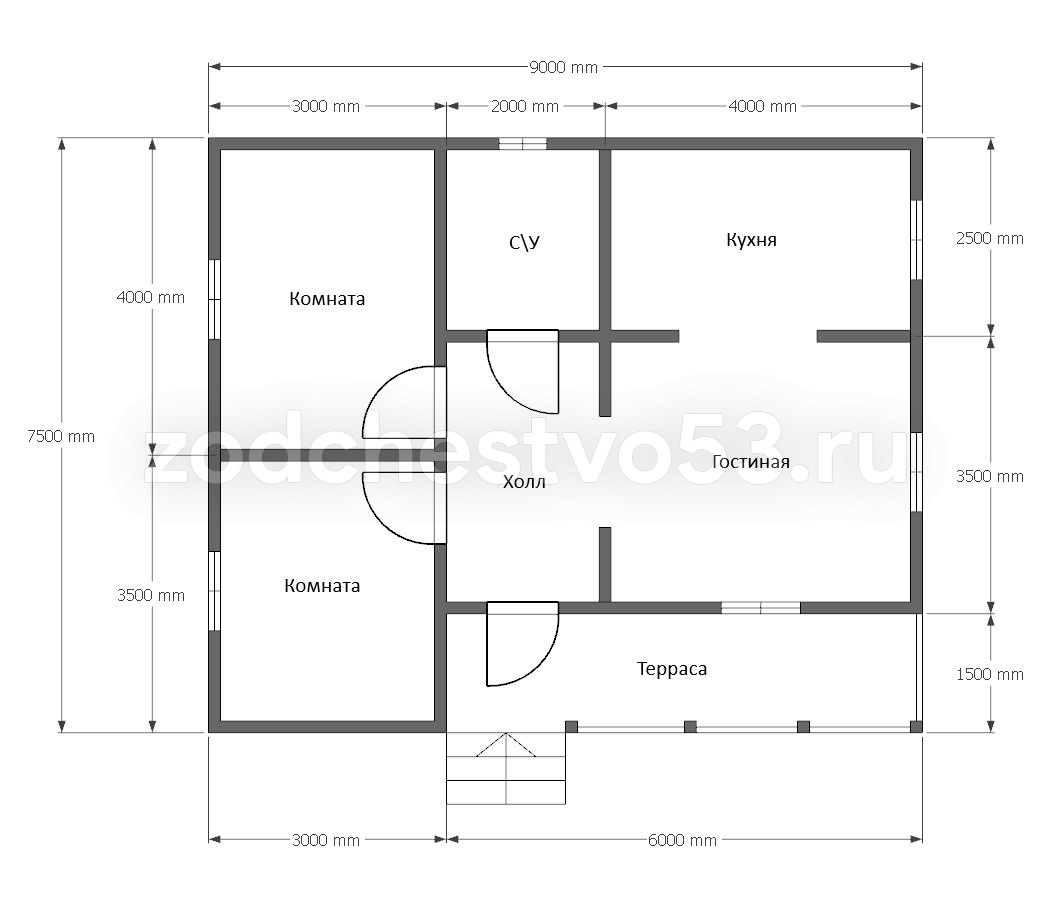 Проект Д-97. Дом из сухого бруса 7,5х9 м.