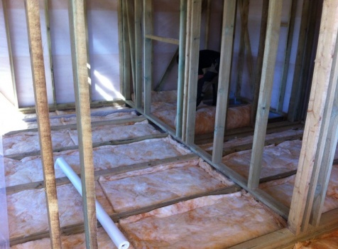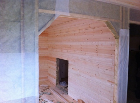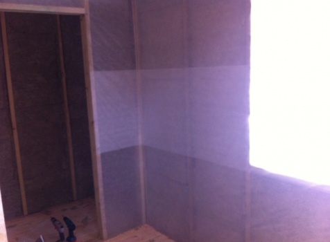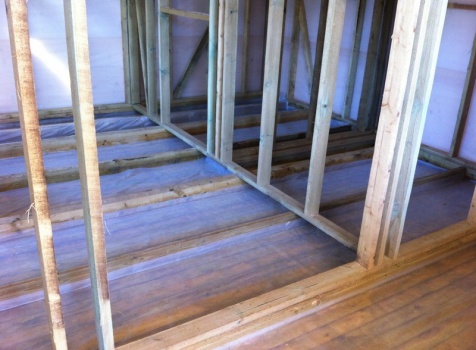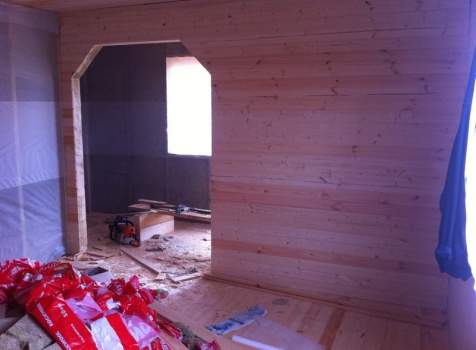 Перегородки, первый этаж: каркасно-щитовые с двух сторон обшиты вагонкой 16 мм., с утеплением в 100 мм., ( Роквул) с двойной проложкой парогидроизоляции.