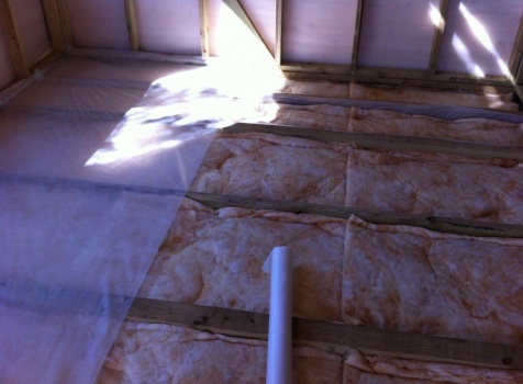 Полы: первый этаж — 36мм., второй этаж — 28мм., шпунтованная доска с утеплением в 100 мм. (Изовер ) с проложкой парогидроизоляции в два слоя.