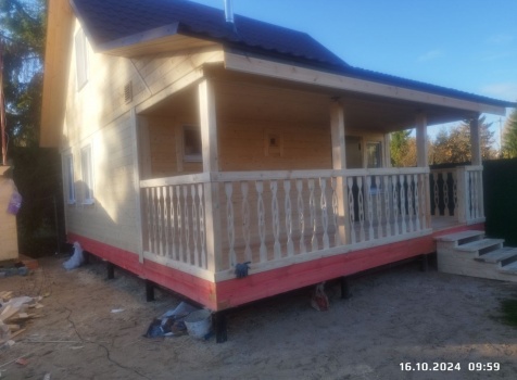 Строительство двухэтажной бани общими размерами 6.0×8.0 ( 6.0×6.0 баня ) из профилированного бруса 140×140 Камерной сушки ( прямой ) под двухскатной крышей и ( 2.0×6.0 терраса открытая ) под отдельной односкатной крышей