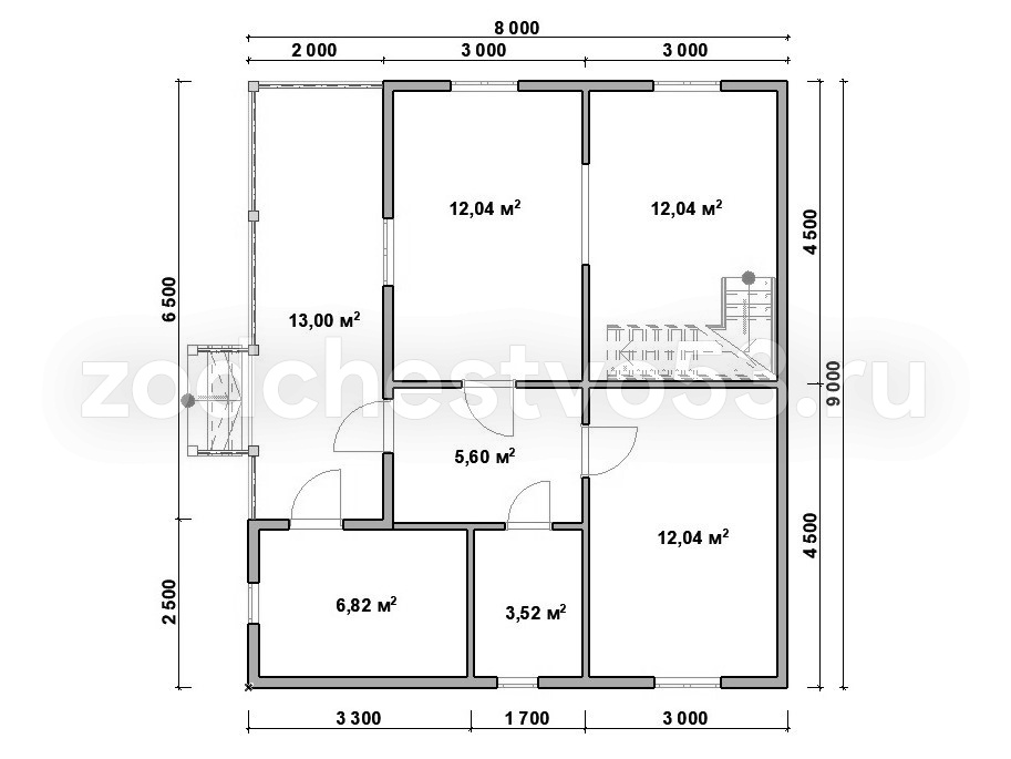 Высота фронтона Одноэтажный дом 2,0 м. Двухэтажный дом 3,50 м.