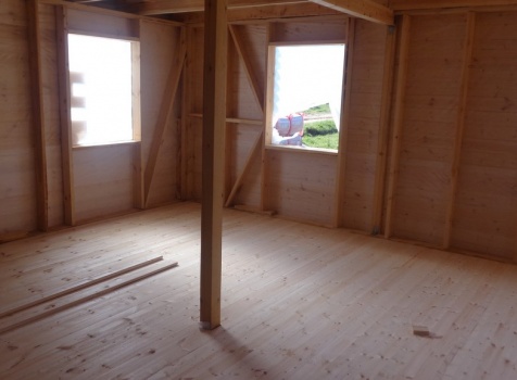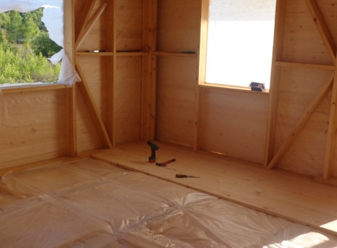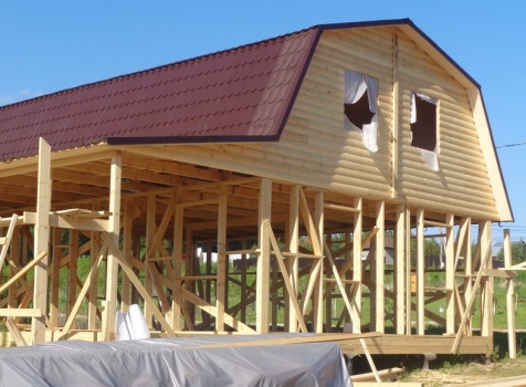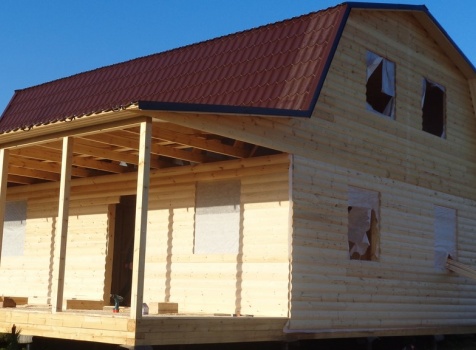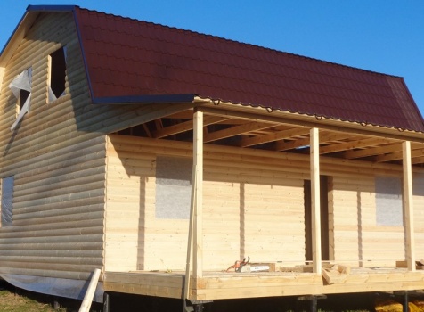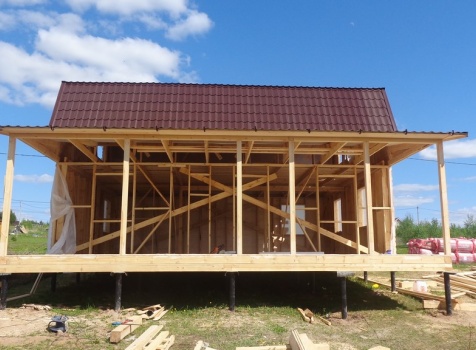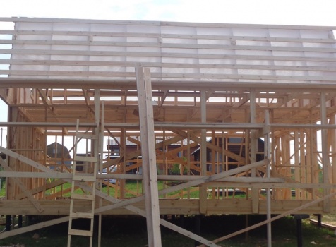 Каркасно-щитовой дом общими размерами 10,0х9,0 (дом 7,0х9,0 и терраса 3,0х9,0 под отдельной крышей). Построен в Калужской области, Тарусский район