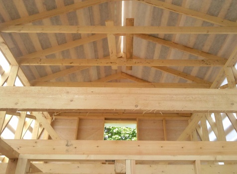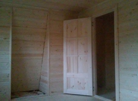 стены каркасно-щитовые 40×150 внутри обшиваются вагонкой, а снаружи — блок-хаусом