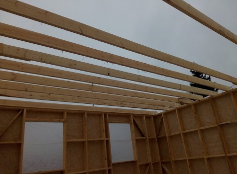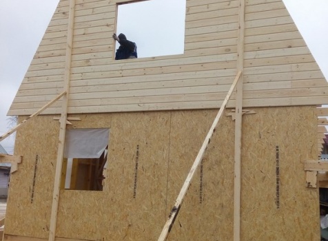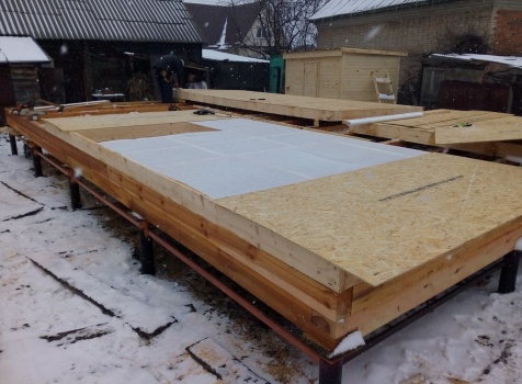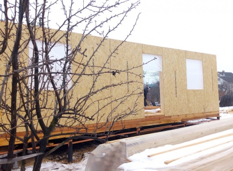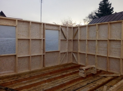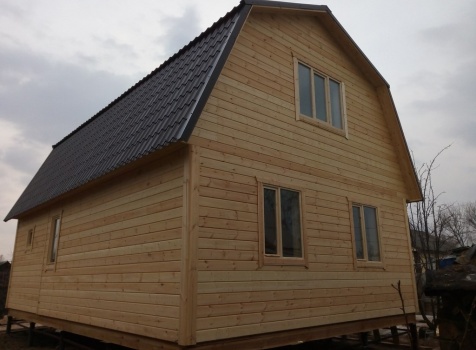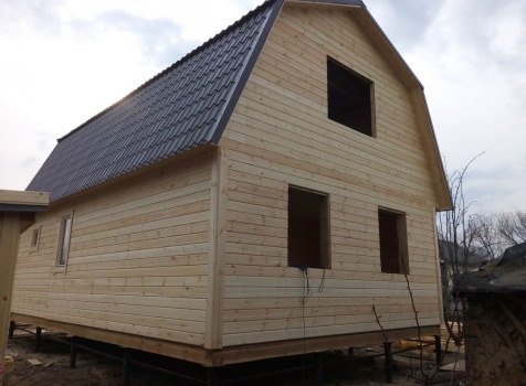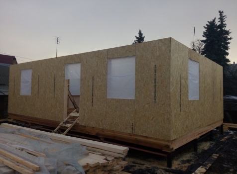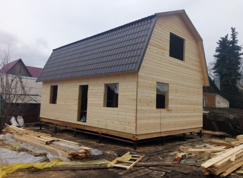 Каркасно-щитовой дом 6,0х9,0 под ломаной крышей и крыльцо 1,0х1,5 под отдельной крышей. Построен в Тамбовской области, г. Мичуринск.