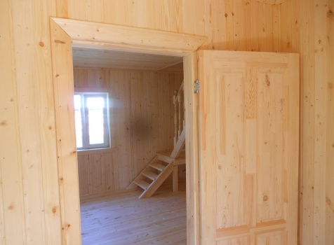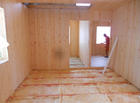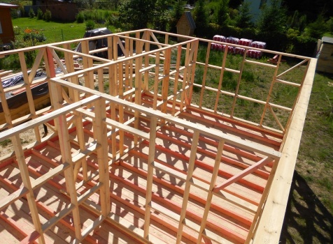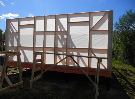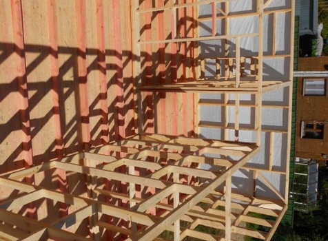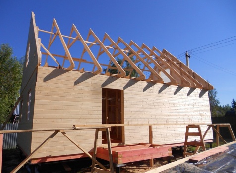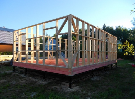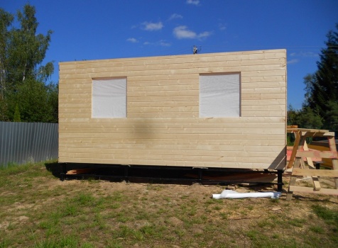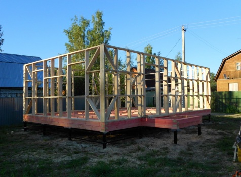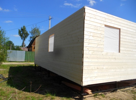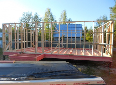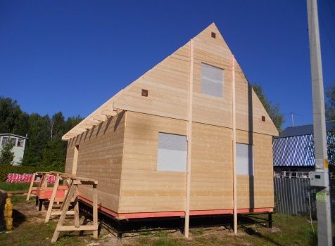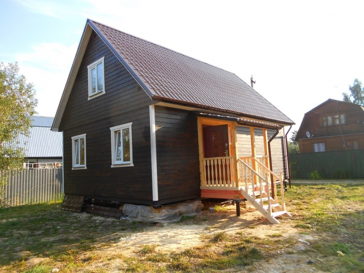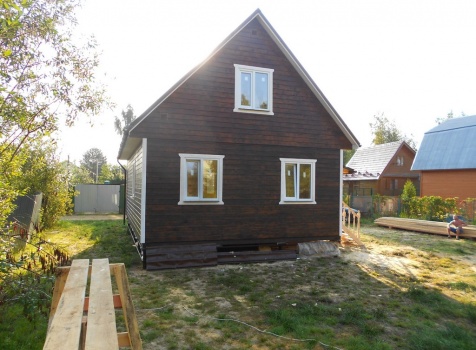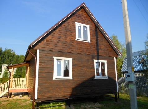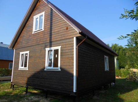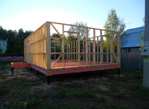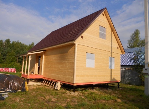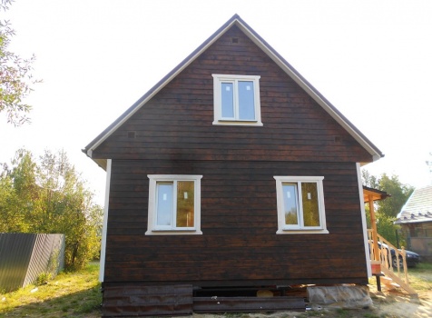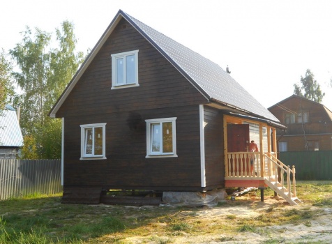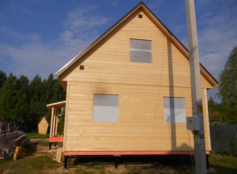 Каркасно-щитовой дом 6,0×9,0 под двухскатной и открытое крыльцо 2,0×1,5 под односкатной крышей. Построен во Владимирской обл., г.Покров