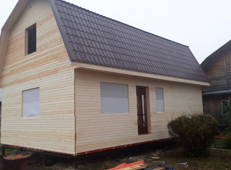 Двухэтажный дом общими размерами 6.0х9.0 каркасно-щитовой под ломанной крышей. Объект построен: Ленинградская область,Тосненский р-он, садоводческий массив Форносово, садоводство "Символ", уч.№145.