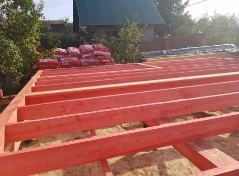 Лаги: из бруса 50х200 через шаг 60см.