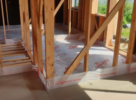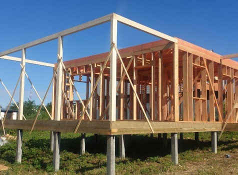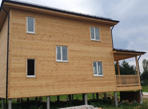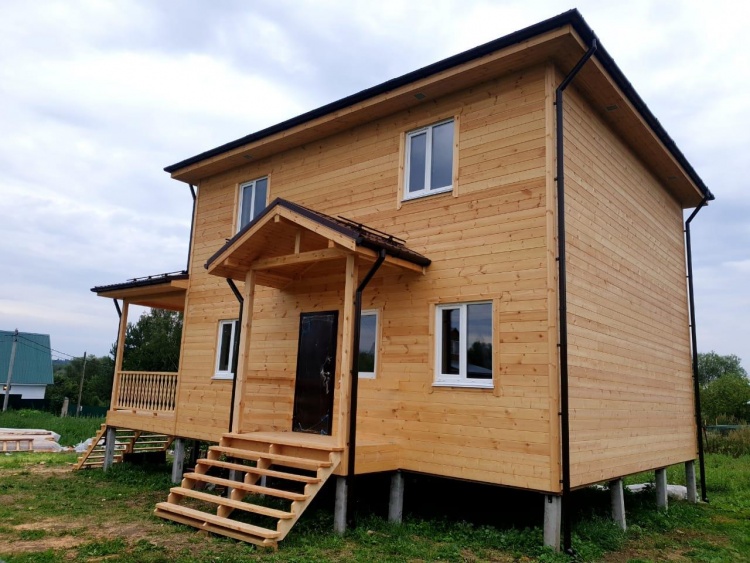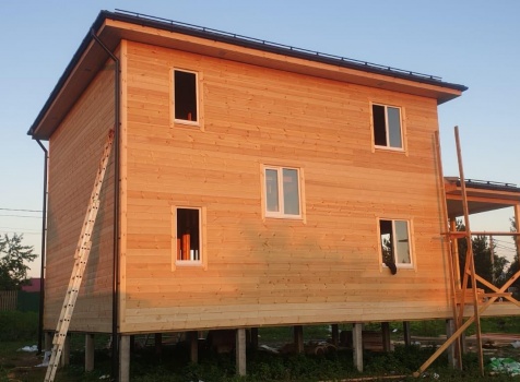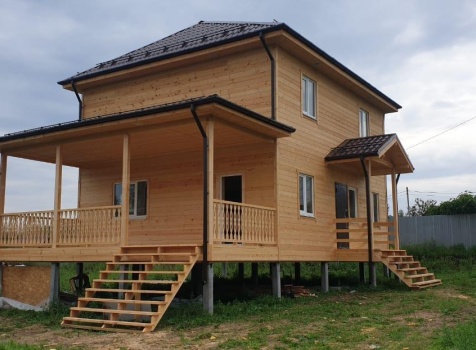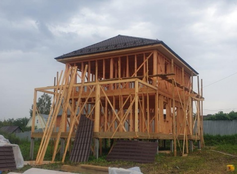 Постройка двухэтажного дома с открытой террасой и открытым крыльцом общими размерами 11.50х8.70 ( 8.50х7.50 дом ) каркасно-щитовой Камерной сушки с утеплением в 200 мм (стены) под четырёхскатной крышей (тип конвертом ) и ( 3.0х7.50 открытая терраса ) под отдельной односкатной крышей ( с вальмами лучами ) плюс ( 2.50х1.20 открытое крыльцо ) под отдельной двухскатной крышей