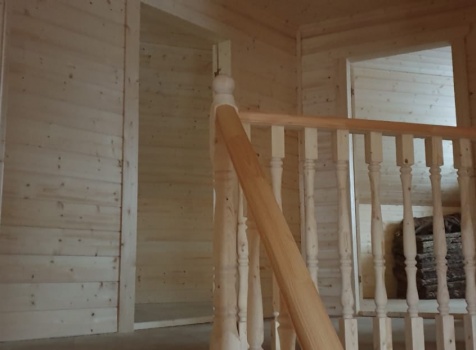 • Открытое крыльцо: 2.50×1.20 с резными балясины и перила из обрезной строганной доски. Полы обрезная строганная доска. Потолки подшиваются Вагонкой