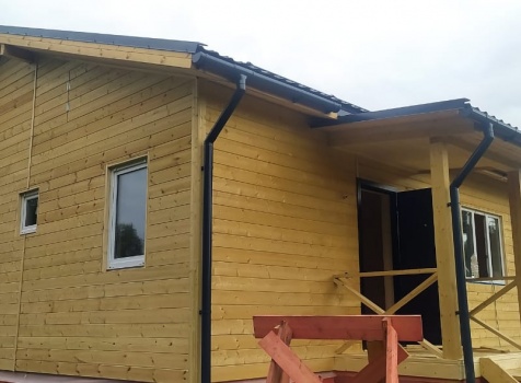 Постройка одноэтажного жилого дома общими размерами 11.0×11.0 (9.50×8.50 каркасно-щитовой) и открытая терраса 9.50×2.50 под общей двухскатной крышей) и крыльцо 1.5×2.0 под отдельной односкатной крышей.