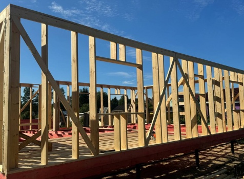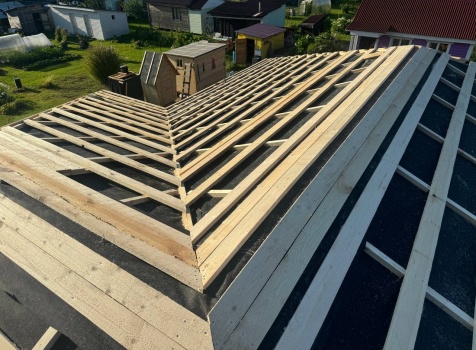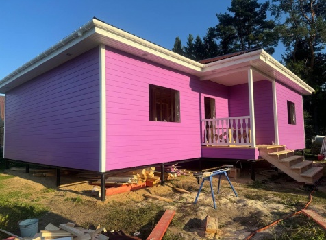Постройка одноэтажного дома с открытой террасой общими размерами 12.0×10.0 ( 12.0×8.0 и 5.0×2.0 дом ) каркасно-щитовой Камерной сушки с утеплением в 200 мм (стены) и ( 2.50×2.0 открытая терраса ) под общей четырёхскатной крышей буквой Г ( тип конвертом ) по проекту: https://zodchestvo53.ru/greta