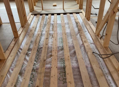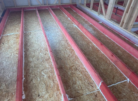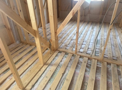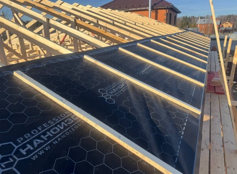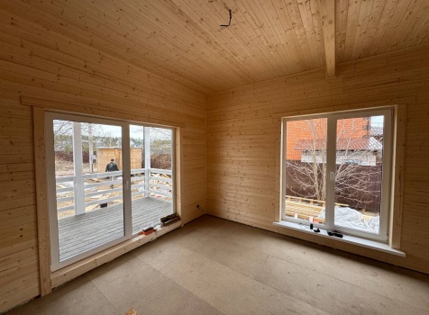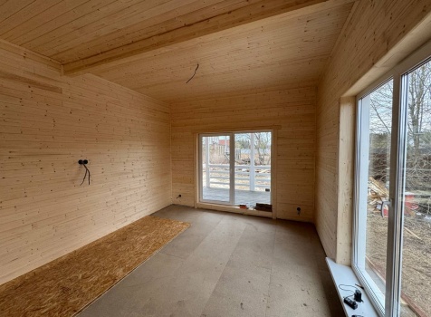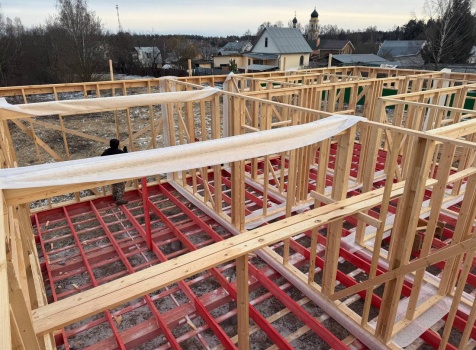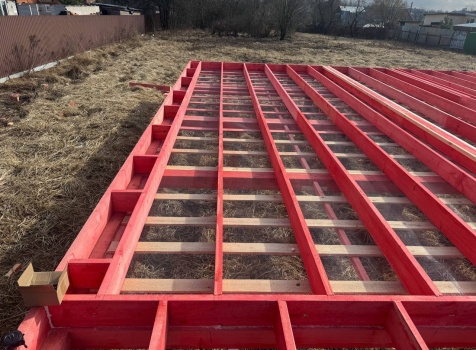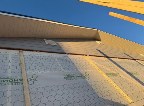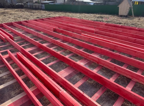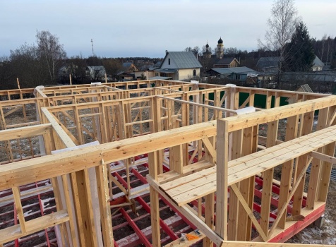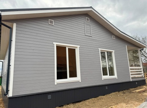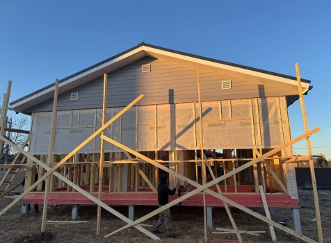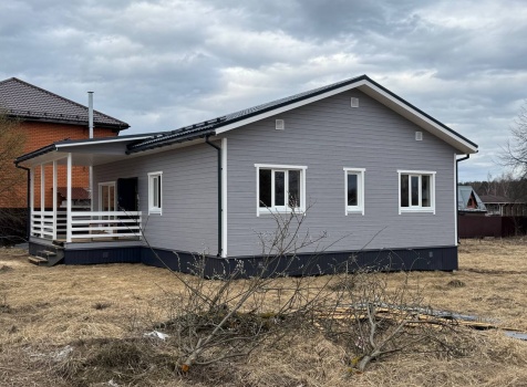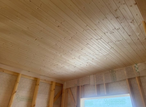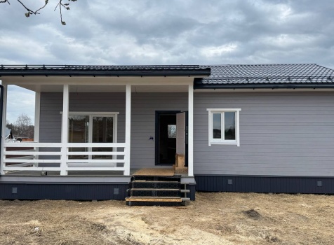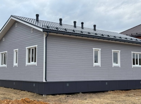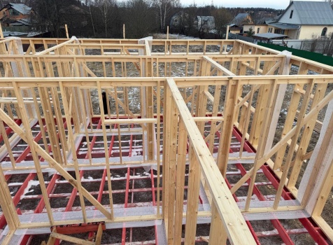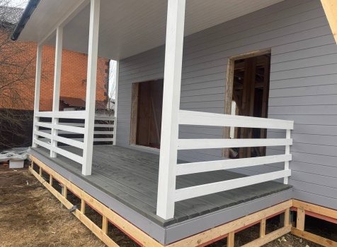 Постройка одноэтажного дома с открытой террасой общими размерами 12.0×11.50 ( 12.0×9.0 дом )каркасный (Камерной сушки) с утеплением в 200 мм (стены) под двухскатной крышей и ( 6.0×2.50 открытая терраса ) под отдельной односкатной крышей