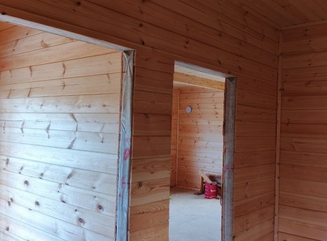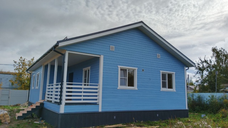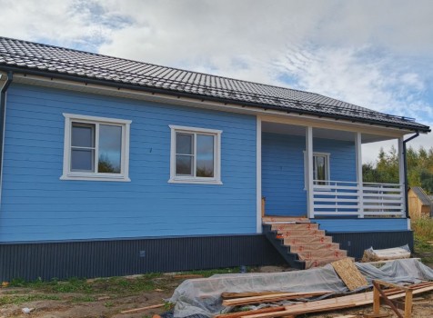 Постройка одноэтажного дома с открытой террасой общими размерами 12.0×9.0 каркасный Камерной сушки с утеплением в 150 мм ( стены ) под общей двухскатной крышей : https://zodchestvo53.ru/dzhenna
