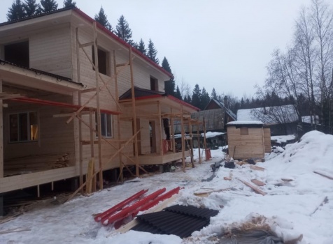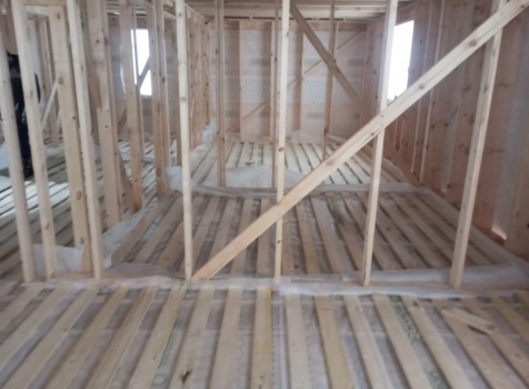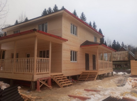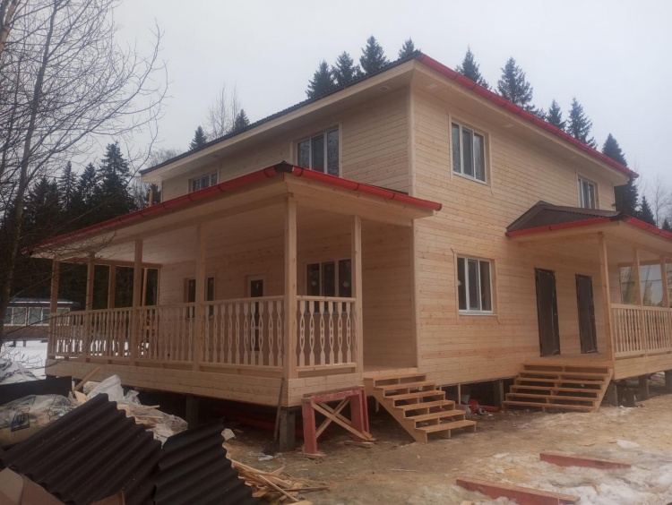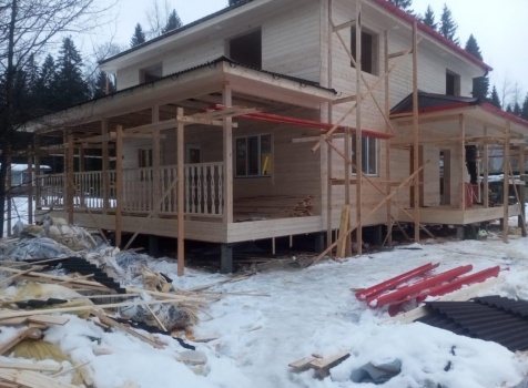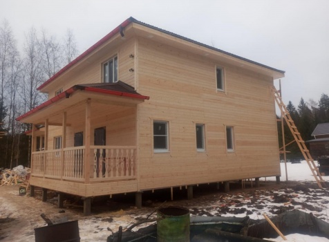 Постройка двухэтажного дома с открытым крыльцом и открытой террасой по проекту Алевтина, общими размерами 13.50×11.50 ( 10.50×9.50 дом ) каркасно-щитовой двухэтажный дом ( Камерной сушки ) с утеплением в 200 мм ( стены ) под четырёхскатной крышей ( тип конвертом ) и ( 6.50×2.0 открытое крыльцо ) под отдельной односкатной крышей ( вальмовая ) и ( 3.0×9.50 открытая терраса ) под отдельной односкатной крышей ( вальмовая ): https://zodchestvo53.ru/alevtina