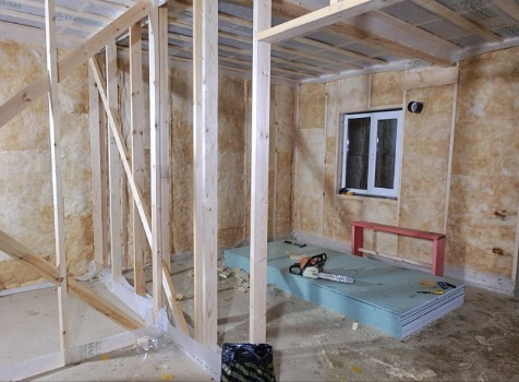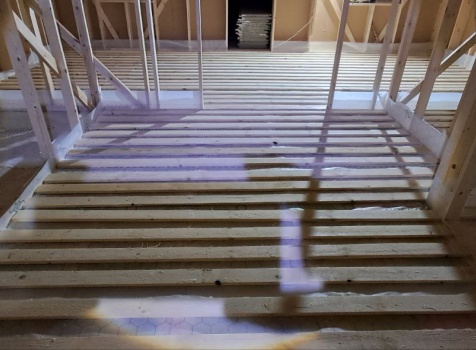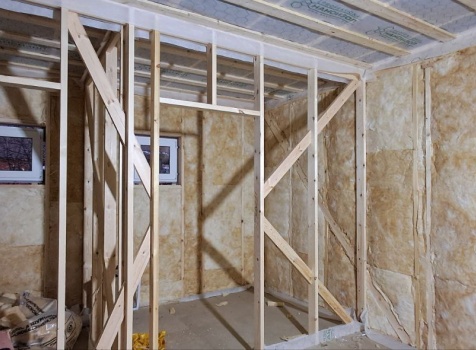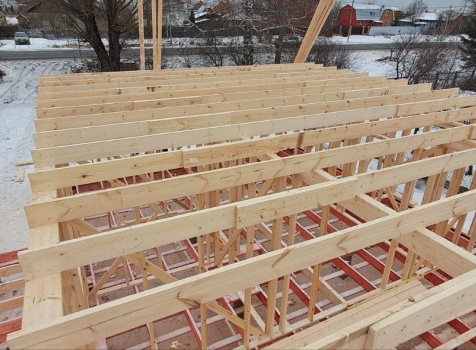 Лаги : брус 40×200. Двойные лаги под перегородки