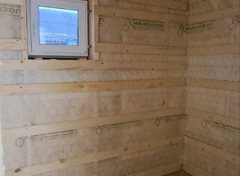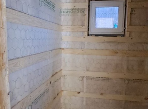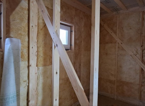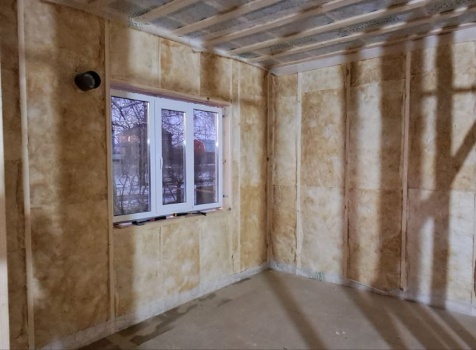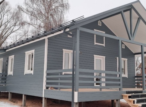 Стены : каркасно-щитовые , каркас снаружи обшивается Белтермо и сухой Имитацией бруса ( Заводская покраска . Цвет — 7031 ), а внутри сухой Имитацией бруса