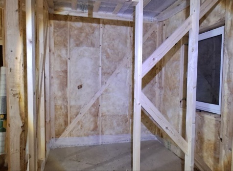 Санузел : Стены и потолок обшиваются сухой строганной доской и Влагостойким гипсокартоном