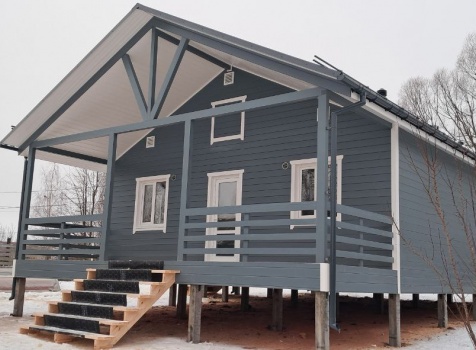 Крыльцо : открытое . Перила и балясины — Заводская покраска . Цвет — 7031 . Потолки подшиваются сухой Имитацией бруса — Заводская покраска . Цвет — Белый . Полы строганная доска