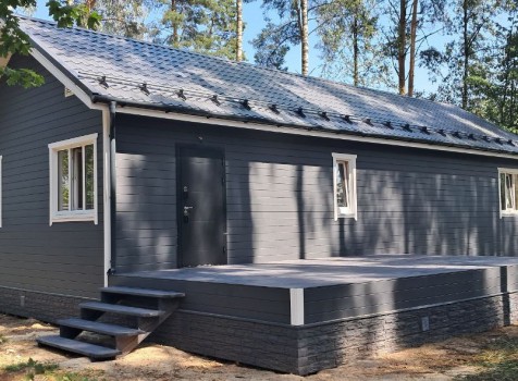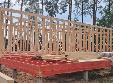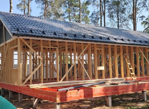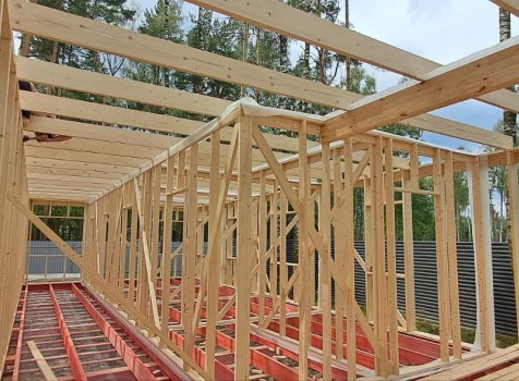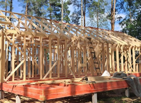 Постройка одноэтажного дома с открытой террасой общими размерами 15.0×10.0 (15.0×6.0 дом ) каркасно-щитовой ( Камерной сушки ) с утеплением в 200 мм ( стены ) под двухскатной крышей и ( 7.0×4.0 открытая терраса ) без кровли