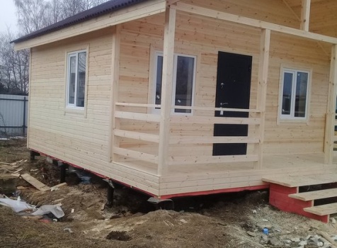 Одноэтажный дом общими размерами 6.0*6.0 (6.0*4.50 каркасно-щитовой с утеплением в 150 мм(стены)) и 1.50*6.0 открытая терраса под общей односкатной крышей.Построен: Московская обл., Щелковский р-он, с. Петровское.