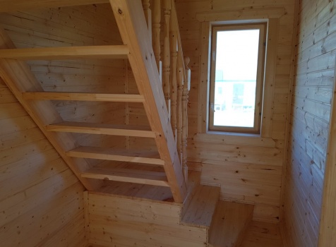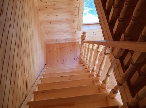 Лестница:двухмаршевая с точеными балясинами,стартовыми столбами и перилами.