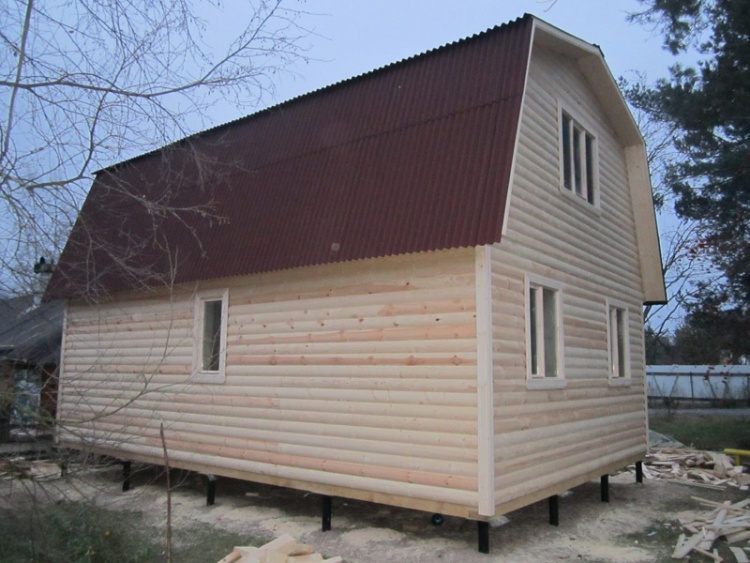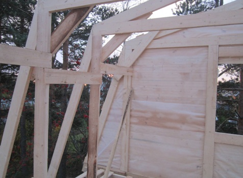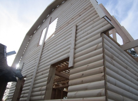 • Фронтоны — каркасно-щитовые, обшиты блок-хаусом, с проложкой парогидроизоляции.