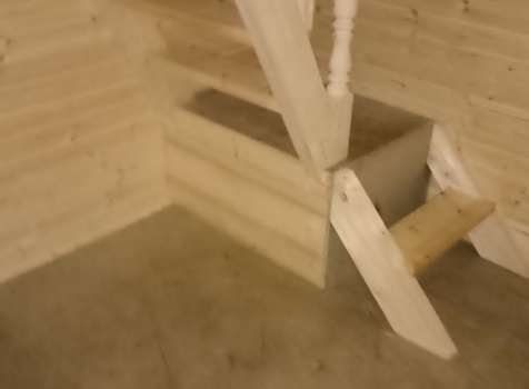• Второй этаж полутораэтажный — каркасно-щитовой, стены с двух сторон обшиваются вагонкой