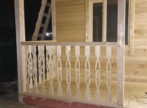 • Терраса: 1.50×6.0 открытая с перилами и резными балясинами