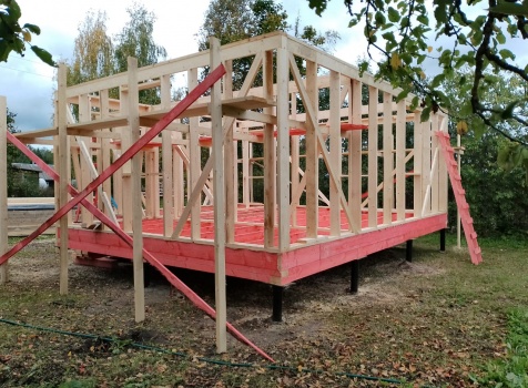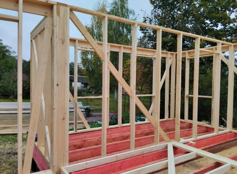 Постройка двухэтажного дома общими размерами 7.0х7.0 ( 7.0х5.0 ) под ломаной крышей и ( 5.0х2.0 ) под отдельной односкатной крышей каркасно - щитовой (Камерной сушки) с утеплением в 200 мм (стены)