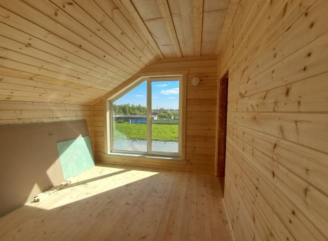 • Второй этаж полутораэтажный : Каркасно-щитовые, снаружи обшивается Влагостойкой фанерой ОСБ , а внутри -Имитацией бруса