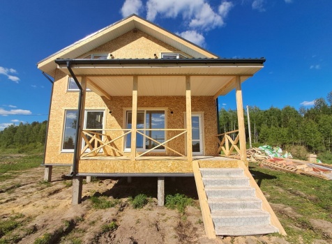 Постройка полутораэтажного дома с открытой террасой общими размерами 8.0×10.50 ( 8.0×8.0 дом полутораэтажный ) каркасно-щитовой ( Камерной сушки ) с утеплением в 200 мм (стены) под двухскатной крышей и ( 5.0×2.50 открытая терраса ) под отдельной односкатной крышей по проекту : https://zodchestvo53.ru/ekaterina