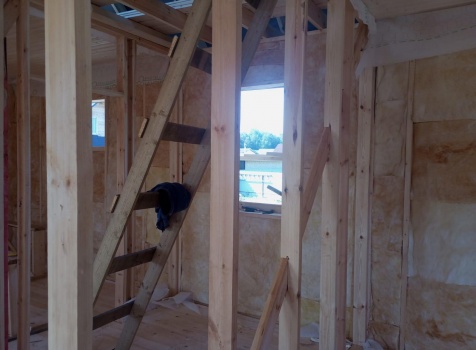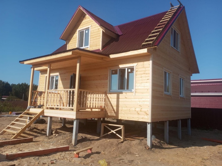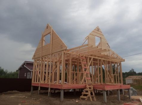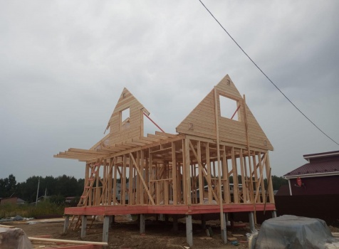 Постройка двухэтажного дома с открытой террасой общими размерами 8.0×9.0 ( 6.0×9.0 дом ) под двухскатной крышей и ( 1.0×3.0 кукушка ) под отдельной двухскатной крышей каркасно-щитовой с утеплением в 150 мм Камерной сушки ( стены ) и ( 2.0×4.0 открытая терраса ) под отдельной односкатной крышей по проекту : https://zodchestvo53.ru/alsu