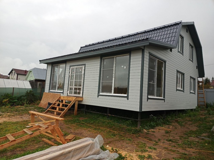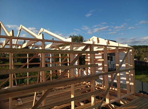 Фронтоны на дому по 7.0 стороне : каркасно-щитовые обшиваются Имитацией бруса
