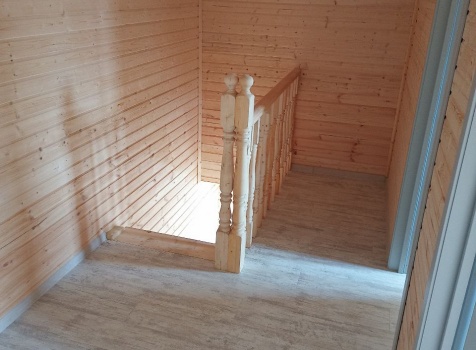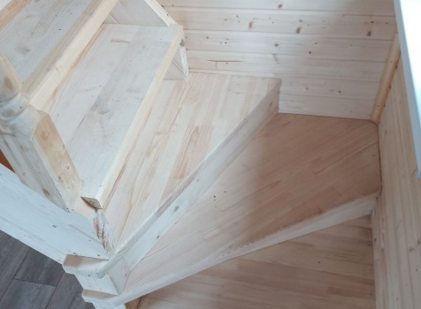 Лестница : одномаршевая с площадкой,точеными балясинами , стартовыми столбами и перилами
