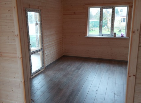 Стены : каркасно-щитовые, обшиваются снаружи Имитацией бруса, а внутри сухой Вагонкой