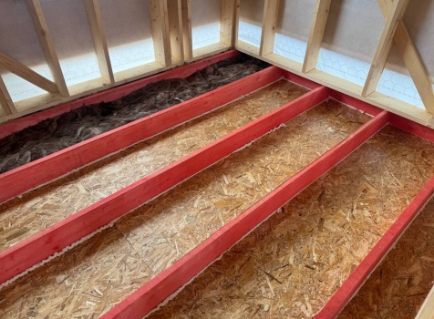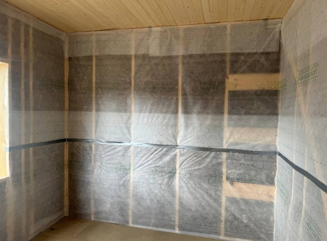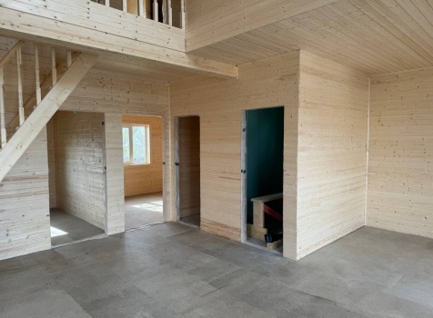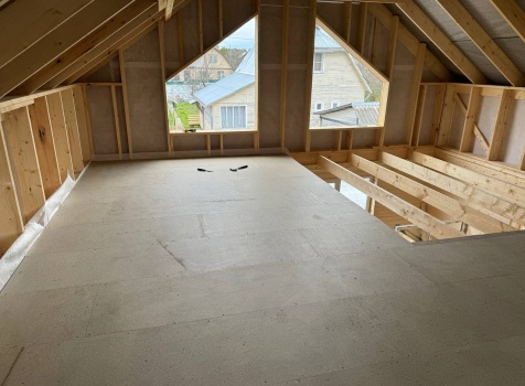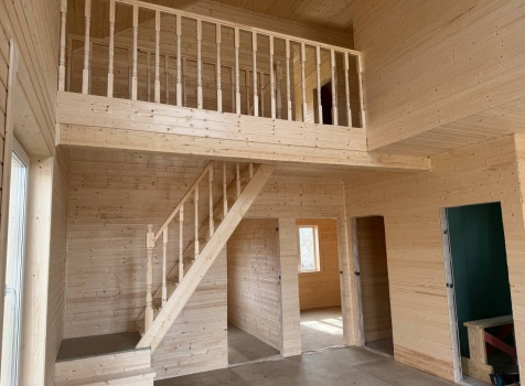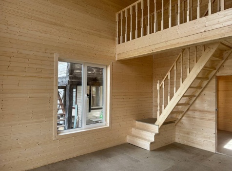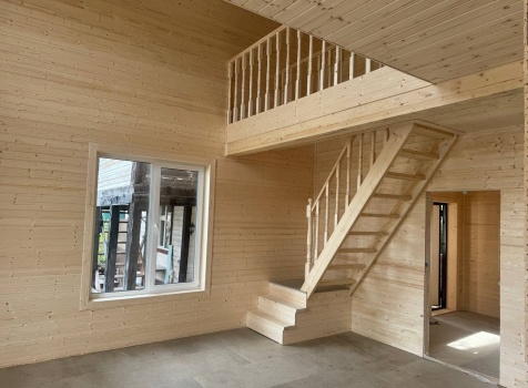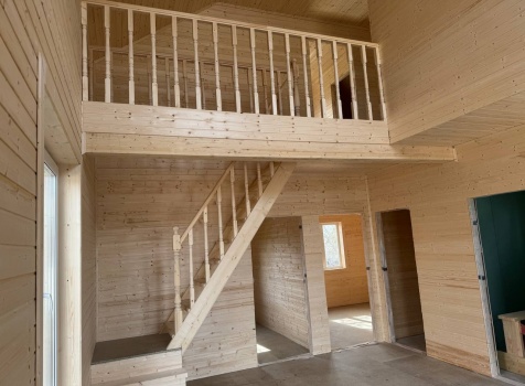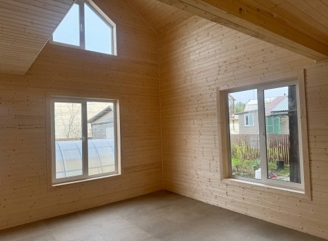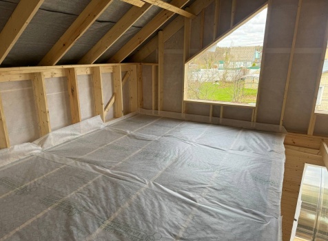 • Второй этаж полутораэтажный: стены Каркасно-щитовые, с уличной стороны обшиваются Влагостойкой фанерой ОСБ, а внутри стены подшиваются сухой Вагонкой