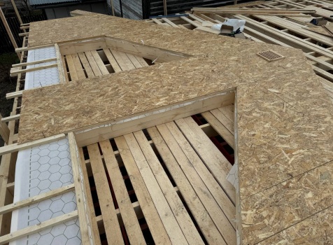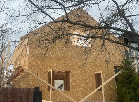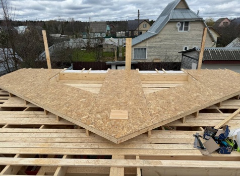 • Фронтоны на дому по 7.0 стороне :каркасно-щитовые обшиваются Влагостойкой фанерой ОСБ