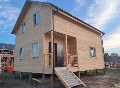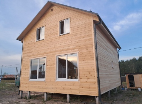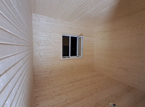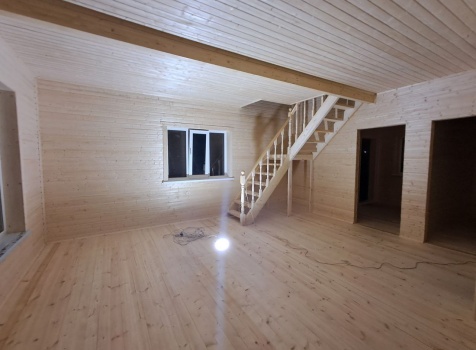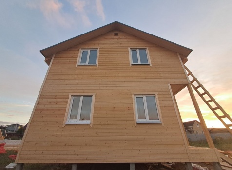 • Второй этаж полутораэтажный : каркасно-щитовой, каркас обшивается Имитацией бруса, а внутри стены подшиваются Вагонкой