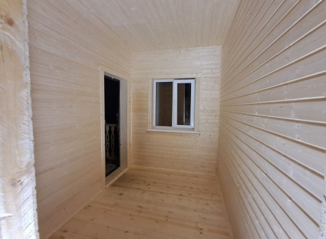 • Терраса : открытая, с резными балясинами и перилами. Полы сухая строганная доска. Потолки подшиваются сухой Вагонкой . Не утепляется