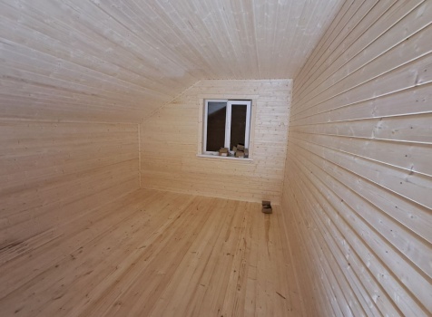 • Потолок по выгородке комнаты и по стропильной системе : подшивается сухой Вагонкой