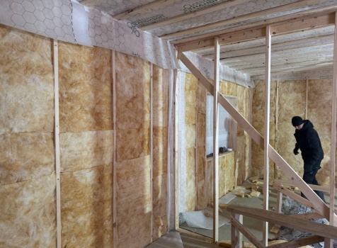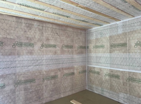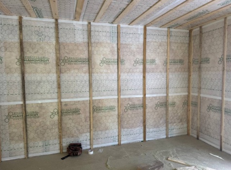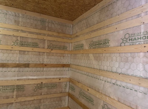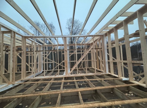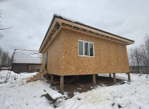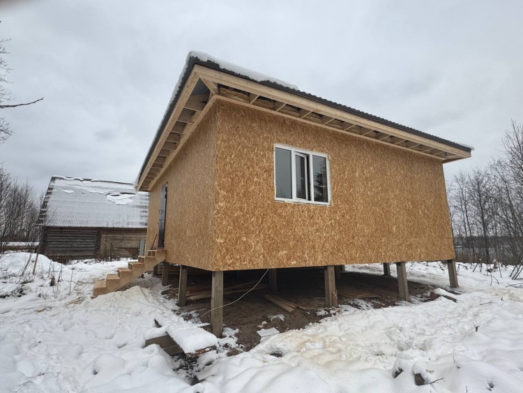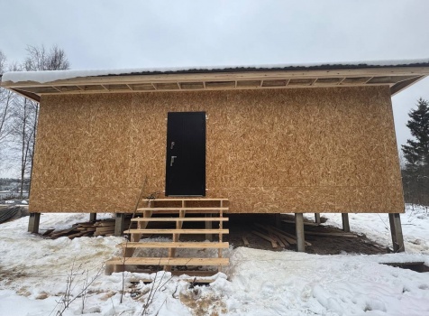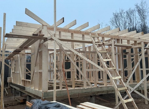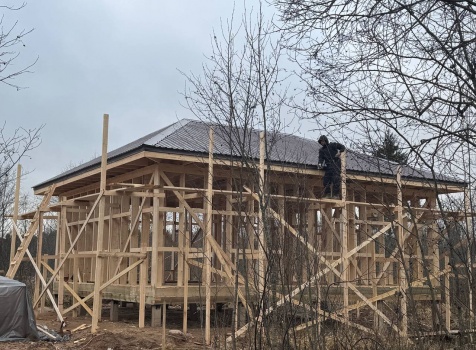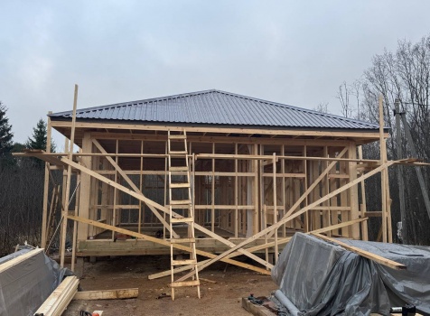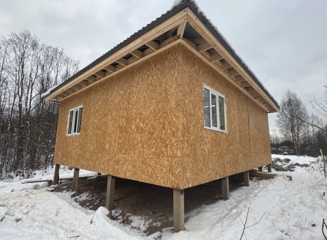 Постройка одноэтажного дома общими размерами 9.0×7.50 ( дом ) каркасно-щитовой ( Камерной сушки ) с утеплением в 200 мм ( стены ) под четырёхскатной крышей ( тип конвертом )