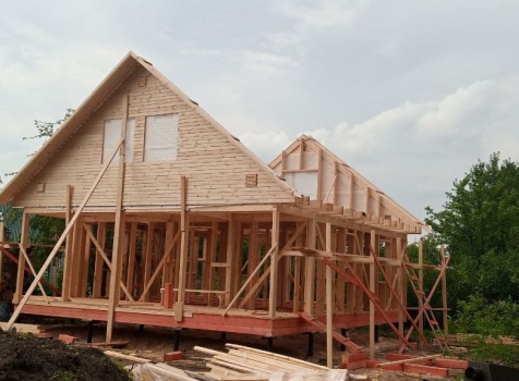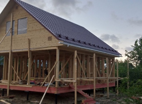 Постройка двухэтажного дома с открытой террасой общими размерами 9.0×8.0 ( 7.0×8.0 дом ) Камерной сушки каркасно—щитовой с утеплением в 200 мм ( стены ) и ( 2.0×8.0 открытая терраса ) под общей двухскатной крышей по проекту : https://zodchestvo53.ru/bahram