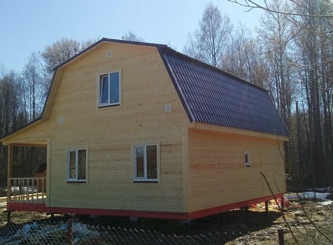 Каркасный дом общими размерами 9.0*8.50 (6.0*9.0 каркасно-щитовой с утеплением в 150 мм под ломанной крышей и терраса 2.50*9.0 под отдельной односкатной крышей). Объект построен: Ленинградская обл., Кировский р-он, СНТ СН "ст. Назия", 6 линия, уч.376.
