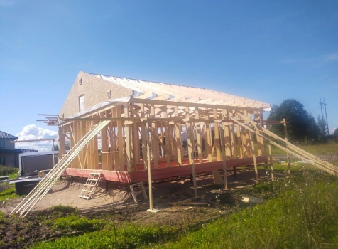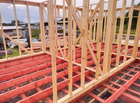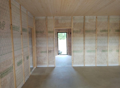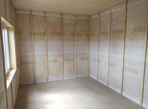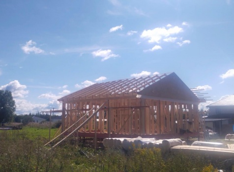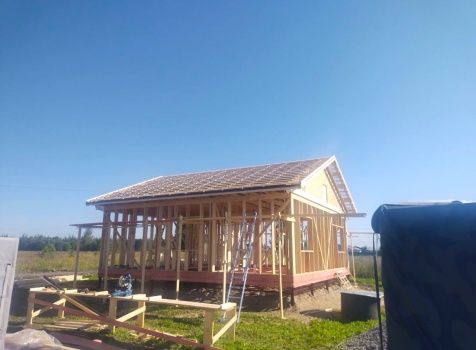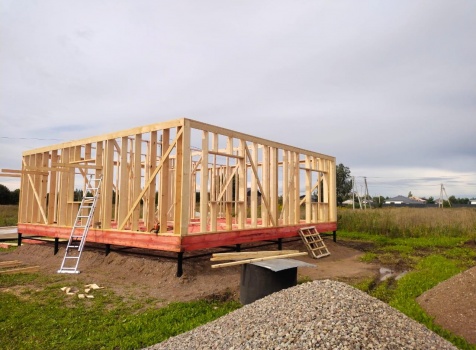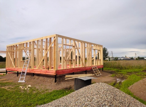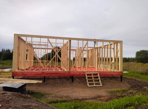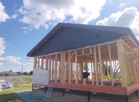 Постройка одноэтажного дома общими размерами 9.0×9.0 каркасно-щитовой (Камерной сушки) с утеплением в 200 мм ( стены ) под двухскатной крышей: