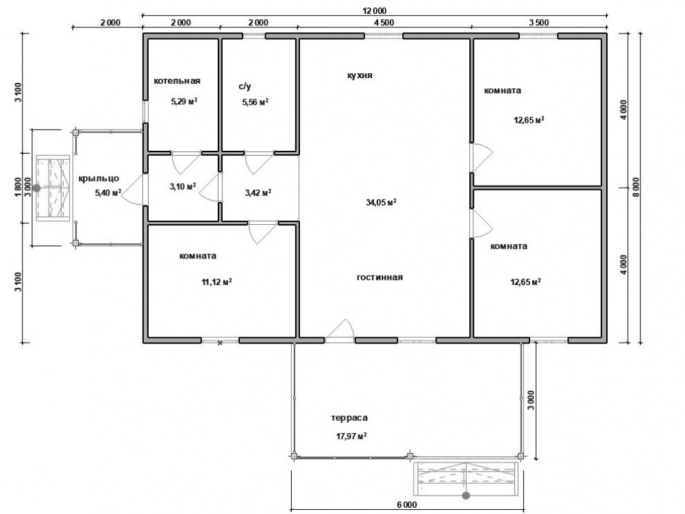Высота фронтона Одноэтажный дом 2,0 м. Двухэтажный дом 3,50 м.