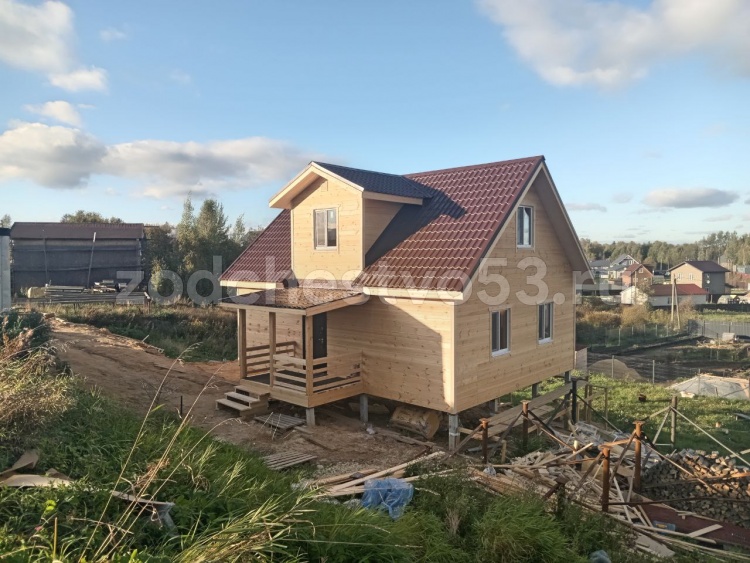Постройка двухэтажного дома с открытой террасой, общими размерами 9.0×9.0 ( 7.0×9.0 дом ) под двухскатной крышей и ( 1.0×3.0 кукушка ) под отдельной двухскатной крышей каркасно—щитовой с утеплением в 150 мм Камерной сушки (стены) и ( 2.0×3.0 открытая терраса ) под отдельной односкатной крышей по пректу: Алина
