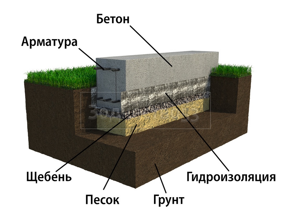 Ленточный фундамент представляет собой замкнутый контур из железобетонных балок, возводимый под всеми несущими стенами здания и передающий подлежащему грунту нагрузку от здания.