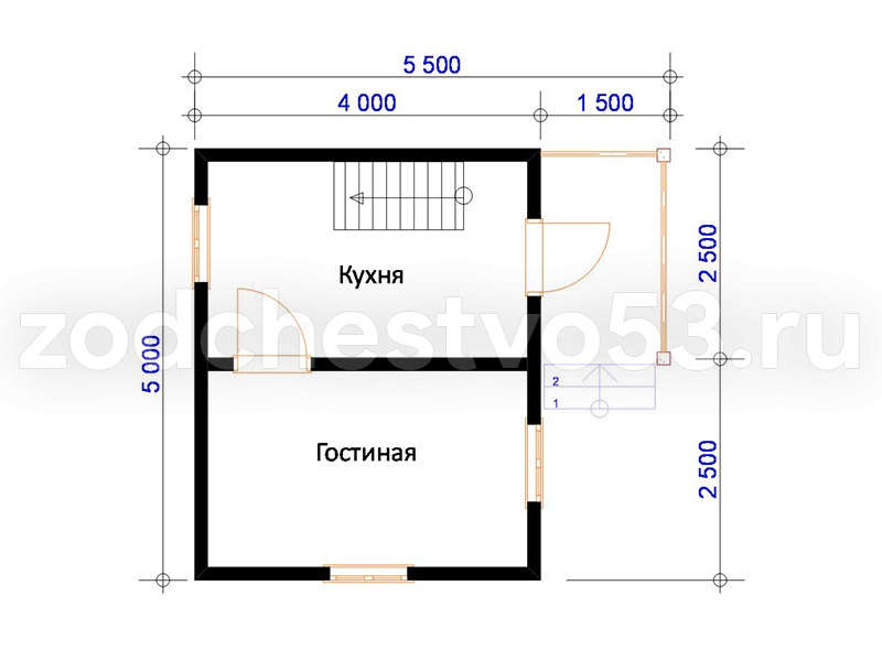 Проект Д-5. Дом из сухого бруса 5х5,5 м.