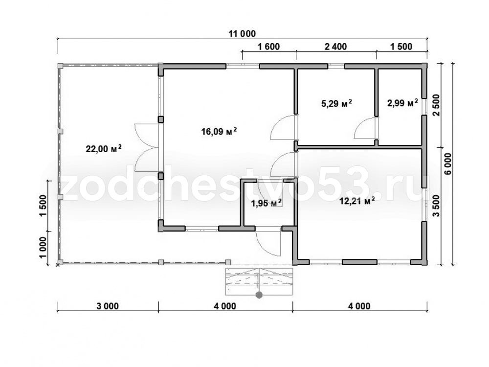 Проект Д-183. Дом из сухого бруса 6х11 м.